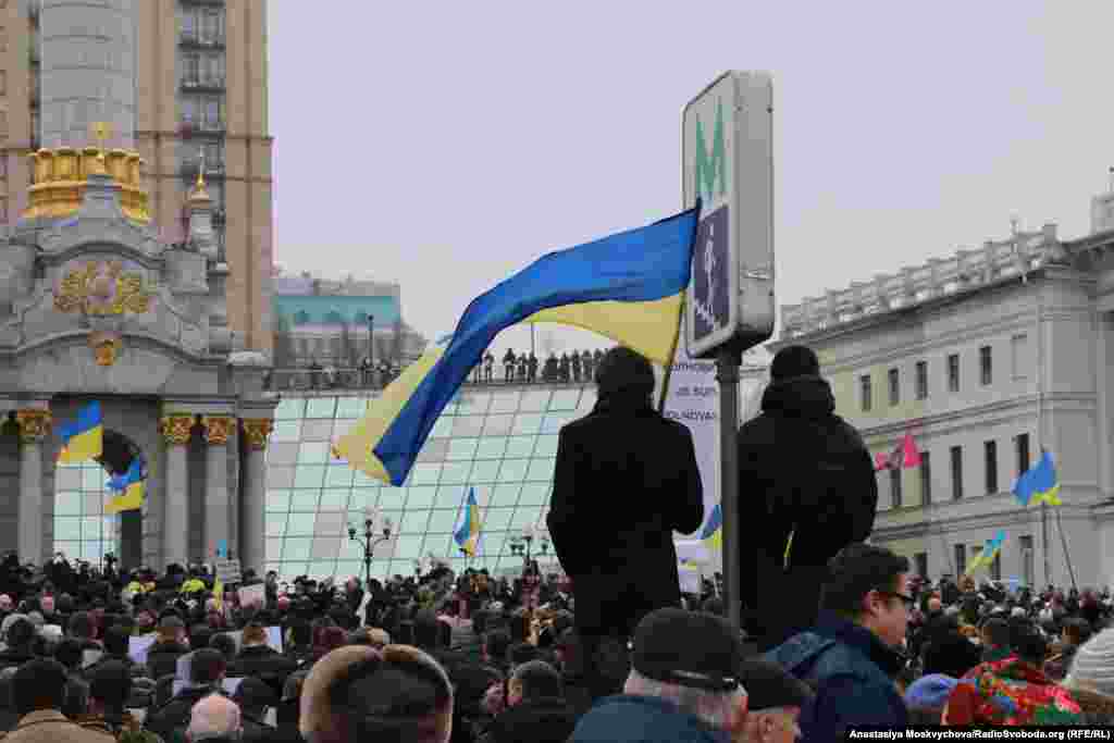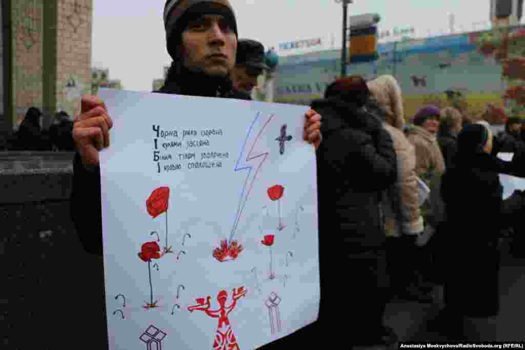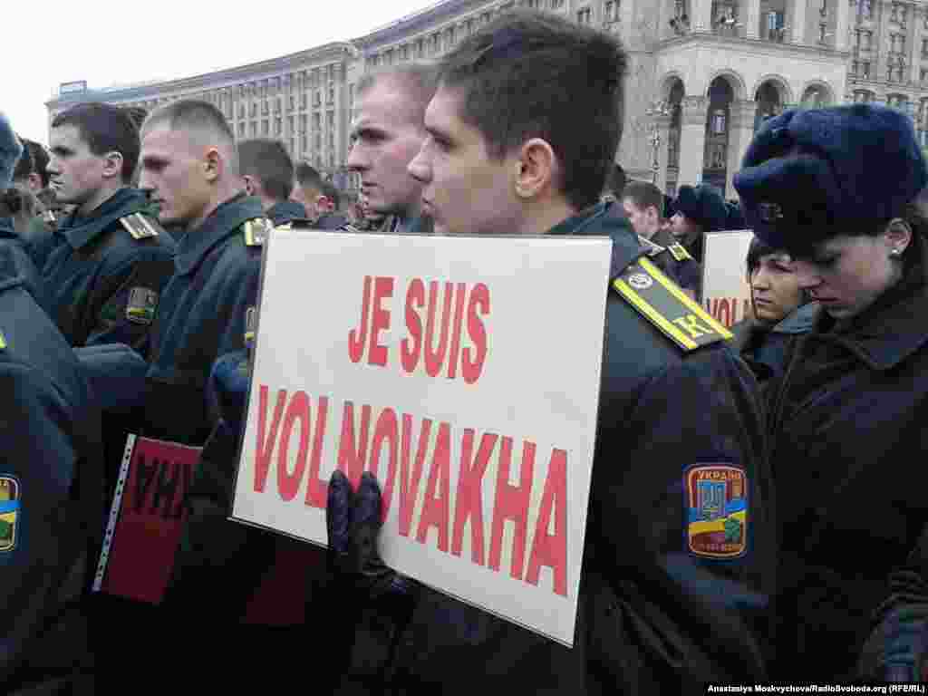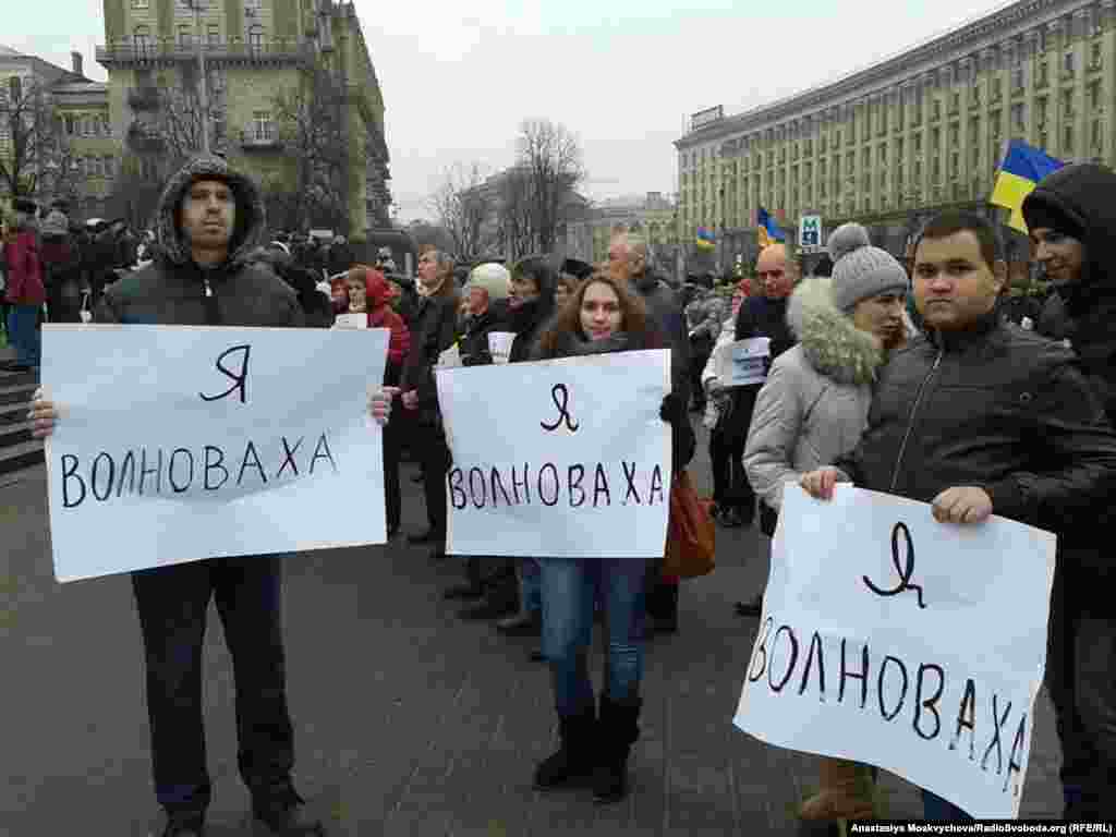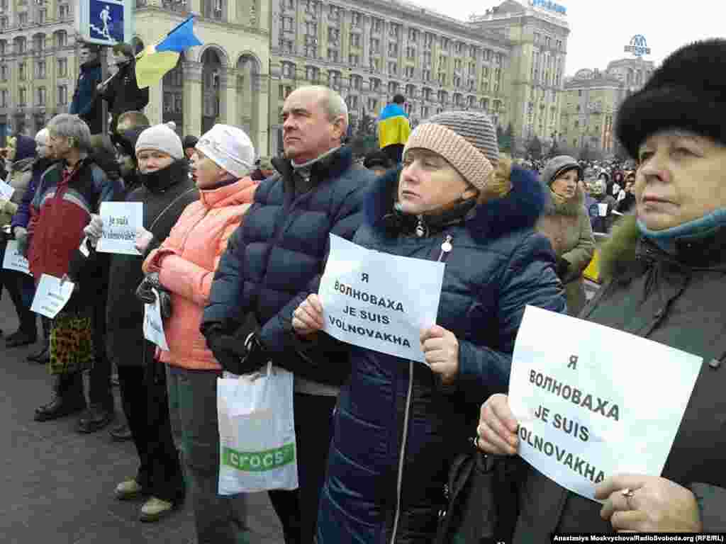 Участники Марша почтили память погибших 13 января в результате обстрела под Волновахой на Донбассе, а также всех людей, погибших во время боевых действий на Востоке Украины
