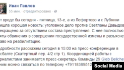 "Если же эта информация не соответствует действительности, то тогда Давыдову просто не могут судить по 275-й статье, потому что она разглашает не достоверные сведения, а фактически распространяет слухи. А за распространение слухов у нас никакого наказание не предусмотрено", - замечает депутат.