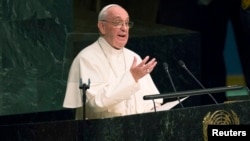 В своем обращении к Генеральной Ассамблее ООН папа римский Франциск призвал президентов и премьер-министров проявить лидерские качества в борьбе с изменением климата и бедностью, а также защитить беженцев, вынужденных уехать из родных стран из-за вооруженных конфликтов.