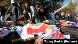 Корреспондент, находившийся на месте трагедии, сообщал о многочисленных телах погибших и раненых, лежащих перед входом на железнодорожную станцию в Анкаре, возде которой произошли взрывы.