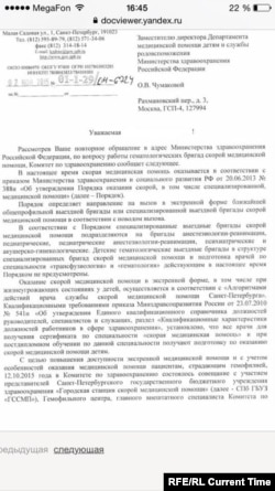 В комитете здравоохранения Петербурга решение вышестоящей инстанции никак не комментируют и на наши запросы отвечают отписками, в которых утверждается, что детские гематологические выездные бригады в структуре специализированных бригад скорой помощи не предусмотрены.