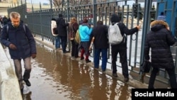 Юмор помогает москвичам справиться со сложившейся ситуацией. Одна из фотографий, ставшая интернет-символом московского зимнего наводнения, датирована 29 января.