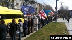Участники акции выстроились в живую цепь длиной в семь километров, чтобы привлечь внимание властей к проблеме возможной чрезмерной зависимости от России по поставкам энергоносителей, сообщает Эхо Кавказа.