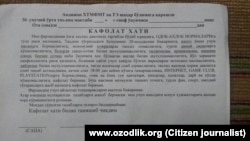 Копия этого документа была опубликована узбекской службой Радио Свобода, которая передает, что аналогичные письма были разосланы и в других регионах Узбекистана.