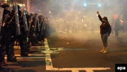 Протестующие кидали в полицейских бутылки и петарды, полиция отвечала светошумовыми гранатами. Толпу пытались рассеять слезоточивым газом. В столкновениях пострадали 16 сотрудников полиции.