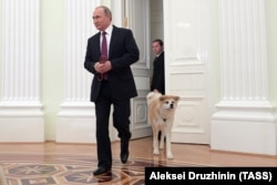 Перед началом интервью российский лидер продемонстрировал японским журналистам собаку породы акита-ину, подаренную ему 4 года назад японской стороной. Он отметил, что Юмэ – "строгая собака" и выполняет функции охранника.