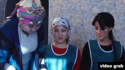 На кадрах из другой серии девушки учатся месить тесто для боорсоков – национального киргизского угощения.