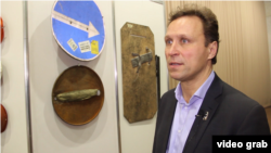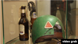 "Это – каска, которая принадлежит герою "Небесной сотни", – показывает экспонаты Игорь Пошивайло, директор Музея Революции достоинства. – Ее активисты нашли под Монументом независимости, их таких две в нашем музее. На обратной стороне – следы крови. Наша задача – провести ДНК-тест и установить, кому она принадлежала".