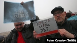 Акции протеста в Петербурге продолжаются уже несколько недель - после того, как стало известно, что власти города намерены передать Исаакиевский собор, сейчас находящийся в статусе музея, в ведение РПЦ.