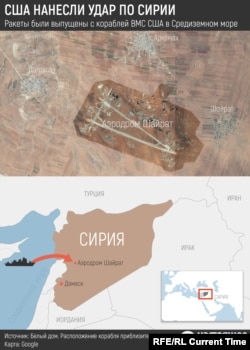 Ранее в Кремле заявили, что американский ракетный по Сирии является агрессией против суверенного государства и попыткой отвлечь внимание мирового сообщества от многочисленных жертв среди мирного населения в Ираке.