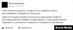 Заместитель главы российского отделения Transparency International Илья Шуманов в субботу прокомментировал в фейсбуке предложение Поклонской.