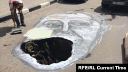 Реакция властей не заставила себя долго ждать: городские службы бросились не заделывать яму, а стремительно стали закрашивать граффити.