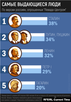 Социологи "Левада-Центра" попросили россиян назвать десятку "самых выдающихся людей всех времен и народов" и получили следующий результат:
