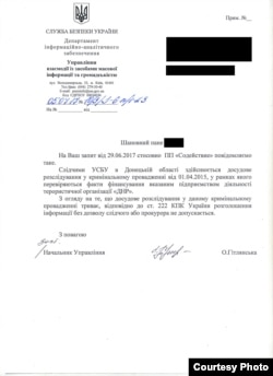 "Следователями УСБУ в Донецкой области осуществляется досудебное расследование в уголовном производстве от 1 апреля 2015 года, в рамках которого проверяются факты финансирования указанным предприятием (ЧП "Содействие" в Торезе – ред.) деятельности террористической организации "ДНР", – говорится в ответе СБУ.