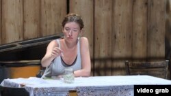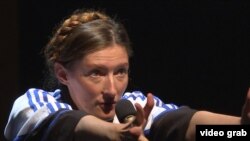 Екатерина Плечкова — одна из трех актеров на этой сцене, кто может читать книги Алексиевич в оригинале. Она родилась в Петербурге, а в Чехии живет уже девять лет. Женщина говорит, что когда читала "Время секонд хэнд", плакала 13 раз.