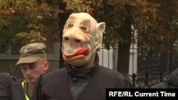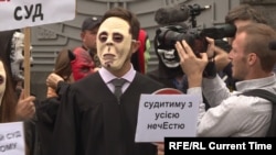 "По моей информации, некоторые из этих недобропорядочных судей дали взятки в размере от 200 до 500 тысяч долларов для того, чтобы попасть в Верховный суд, – объясняет один из участников акции. – И я символизирую такого судью, который считает, что у него есть прикрытие в высших эшелонах власти".