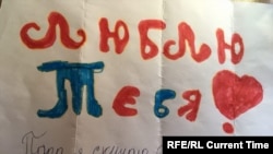 "Дорогой папа, я очень скучаю по тебе. Я надеюсь, что скоро тебя выпустят. У меня все хорошо, учусь нормально. С прошедшим тебя Днем рождением (орфография сохранена). Как у тебя там дела? Напиши по возможности. Люблю тебя от всей души. Твоя дочь Наташа".