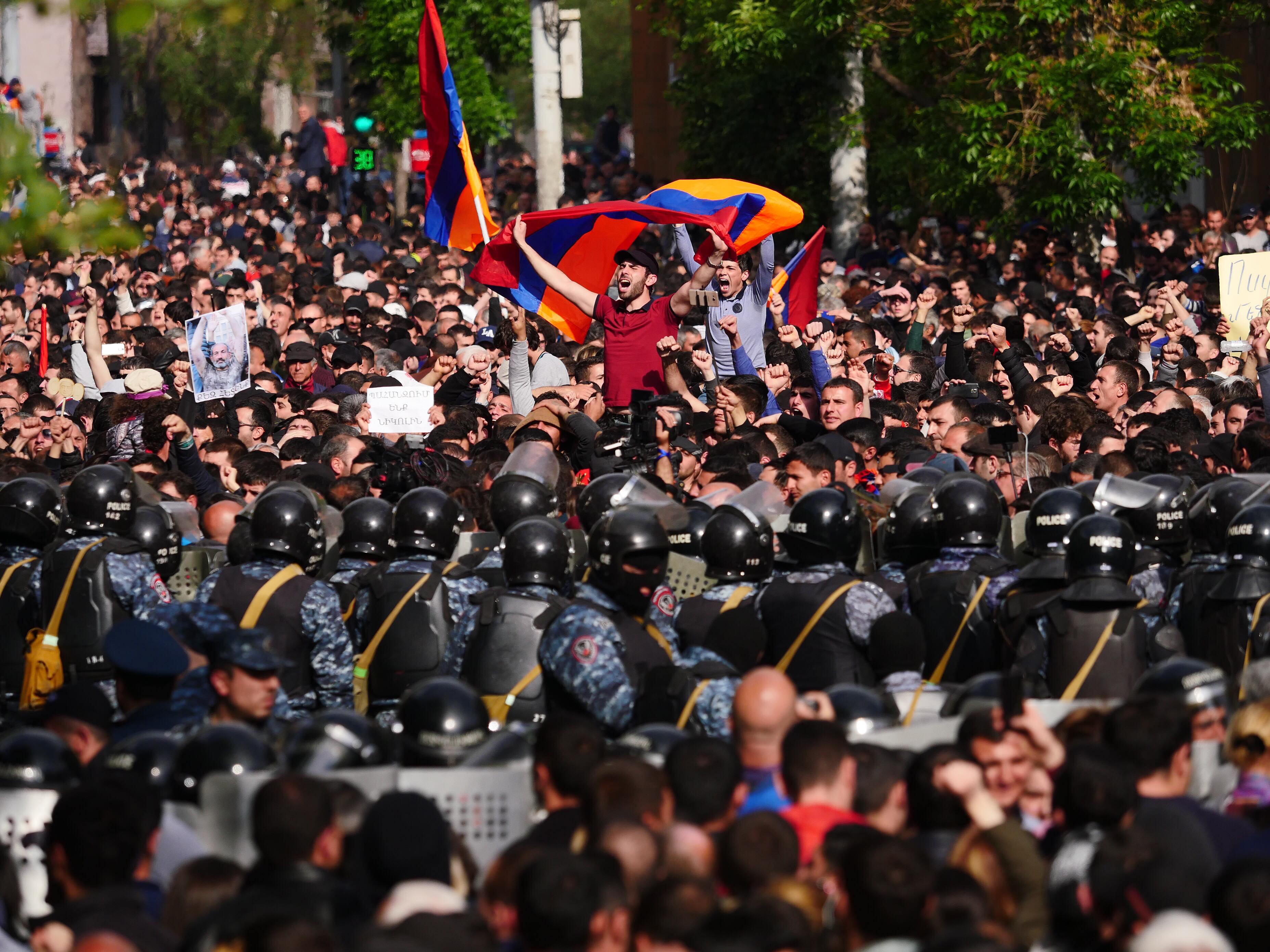 Спустя почти две недели массовых демонстраций премьер-министр Армении Серж Саргсян ушел в отставку. Оппозиция протестовала против назначения Саргсяна, который в течение 10 предыдущих лет занимал пост президента. В воскресенье, 22 апреля, на площадь Республики в Ереване вышли, по разным оценкам, от 35 до 100 тысяч человек. Это стало крупнейшей акцией протеста в новейшей истории Армении.