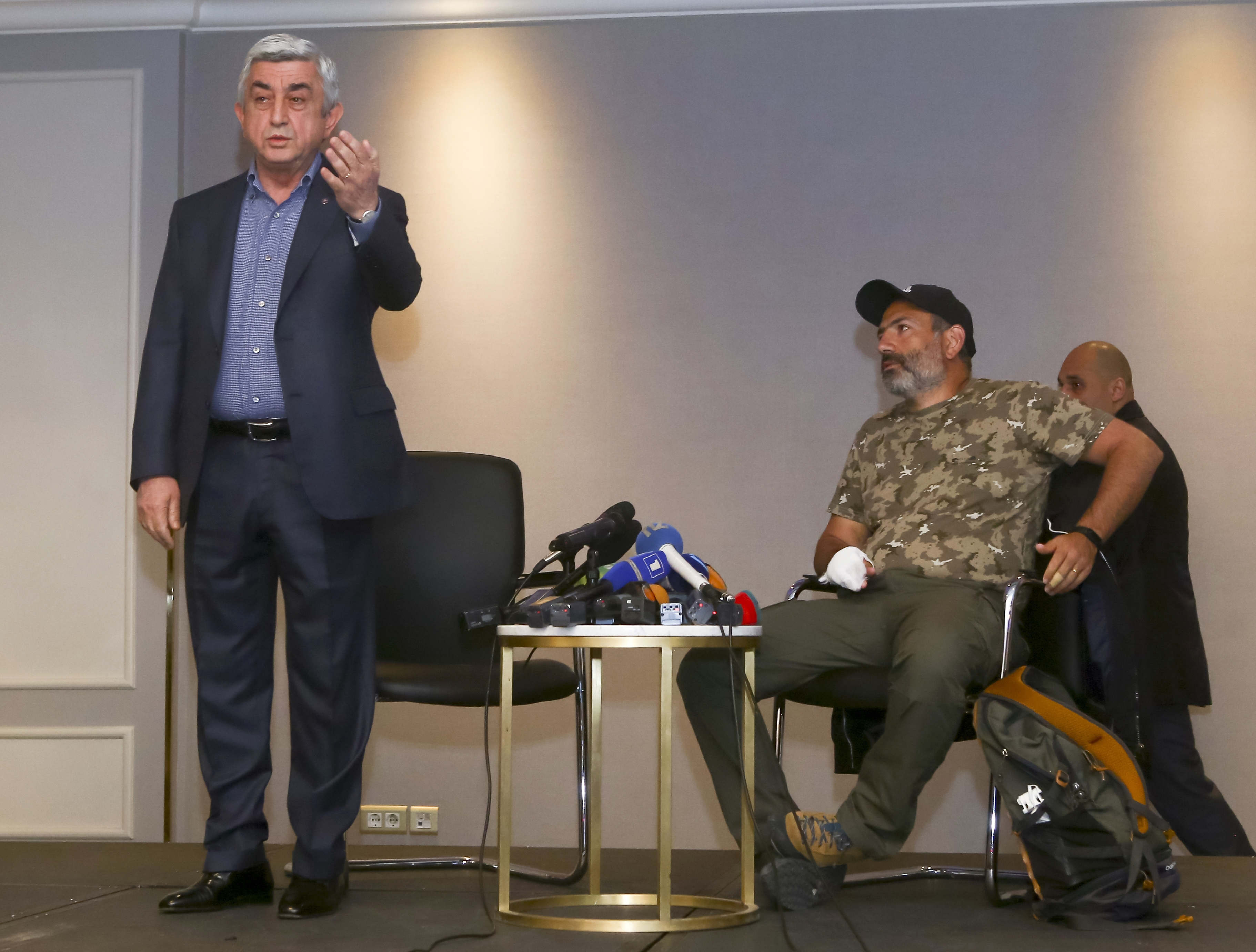 На следующий день во время публичной встречи с лидером протеста, главой оппозиционной партии "Елк", Николом Пашиняном Саргсян переговоры сорвал. Он заявил, что требования оппозиции – "шантаж государства", политическая партия, набравшая 7-9% голосов, не имеет права говорить от лица всего народа Армении, и сразу же покинул пресс-конференцию. Переговоры не продлились дольше трех минут.