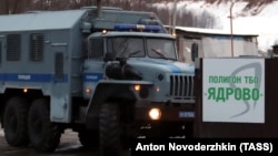 Активисты, ведущие телеграм-канал "ЯДРОВОнь" сняли видео с грузовиком "МАЗ", припаркованным на обочине в окружении полицейских автомобилей. На опубликованном ими фото видны отметины на лобовом стекле автомобиля. Активисты предполагают, что стреляли дробью.