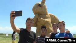"Мы тестировали нашу технику, делали уборку урожая, и вот у нас получилось очень много соломы, – рассказывает Ринат Фазылбеков, представитель агропарка, где была установлена скульптура. – У нас была солома, сено, и нам это было несложно, это не стоило нечего. А студенты КазНАУ предложили сделать вот такой объект".