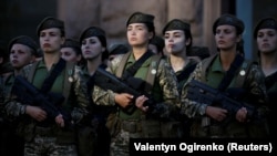 В центре Киева на Крещатике прошел военный парад "Марш новой армии". В нем участвовали 4,5 тысячи военных, в том числе впервые подразделение женщин-военнослужащих.