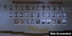 На этом фото слета выпускников ДВОКУ, сделанном 27 июля 2014 года, хорошо видно, что симметрию стенда нарушили две новые фотографии – Маслова и Попова (их несложно опознать даже в таком плохом качестве, фотографий этих героев России в открытых источниках более чем достаточно):
