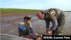 Рыбаки стараются не показывать привычные места ловли. Ведь, как они говорят, чтобы улов был хорошим, а невод не приходил в негодность, нужно "тралить" пески. То есть очистить специальным неводом место ловли от бревен и коряг. Именно это Виктор и Евгения делают, прежде чем забросить невод для рыбы.