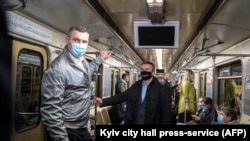 В киевское метро – одно из самых людных мест украинской столицы – без масок не пускают. Однако сразу за турникетами многие пассажиры стягивают маски на подбородок, а то и вовсе снимают их. Скопление людей в час пик в ограниченном пространстве, похоже, никого не смущает.