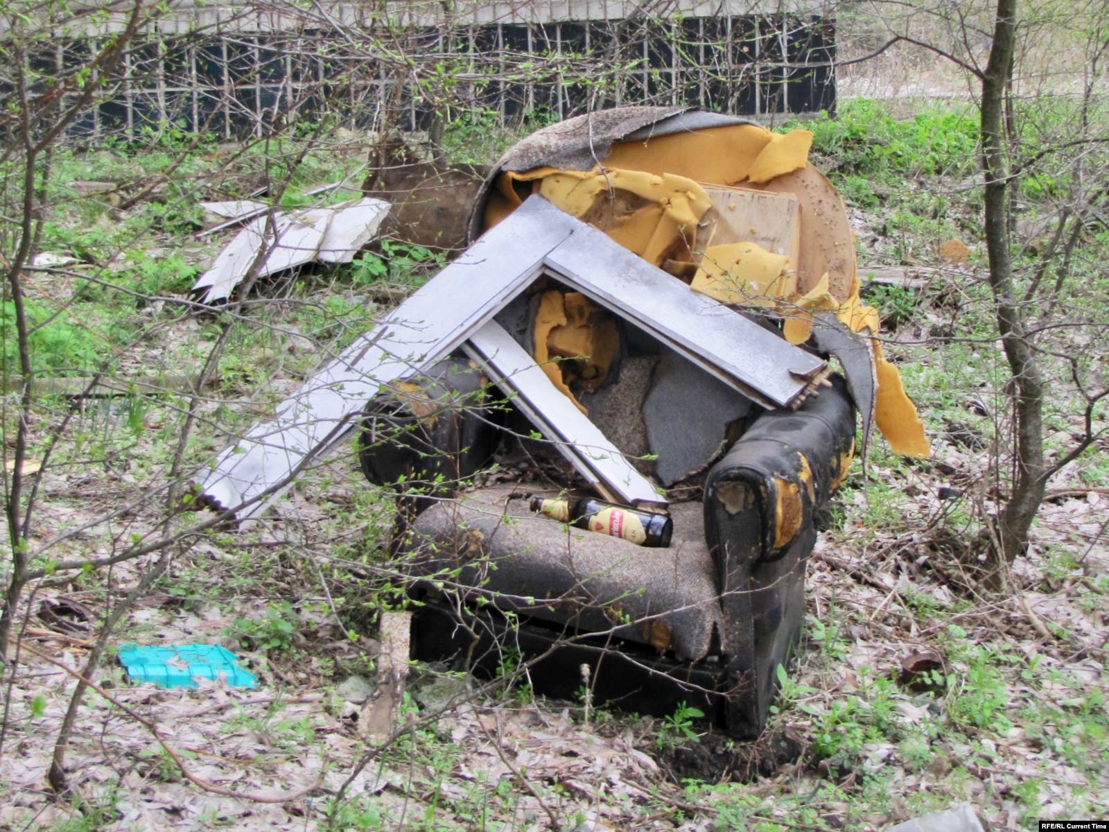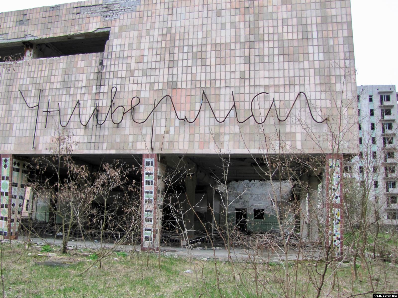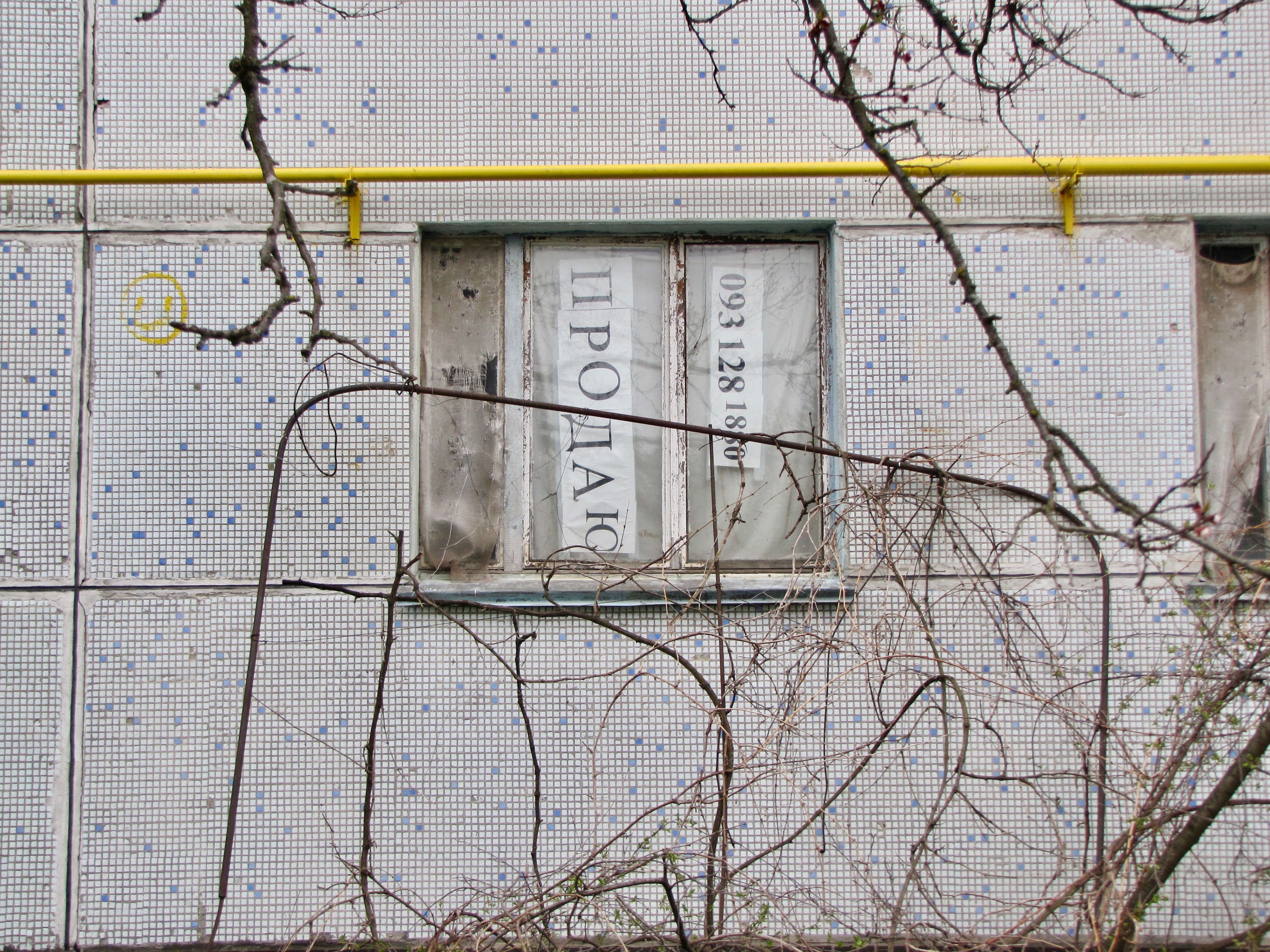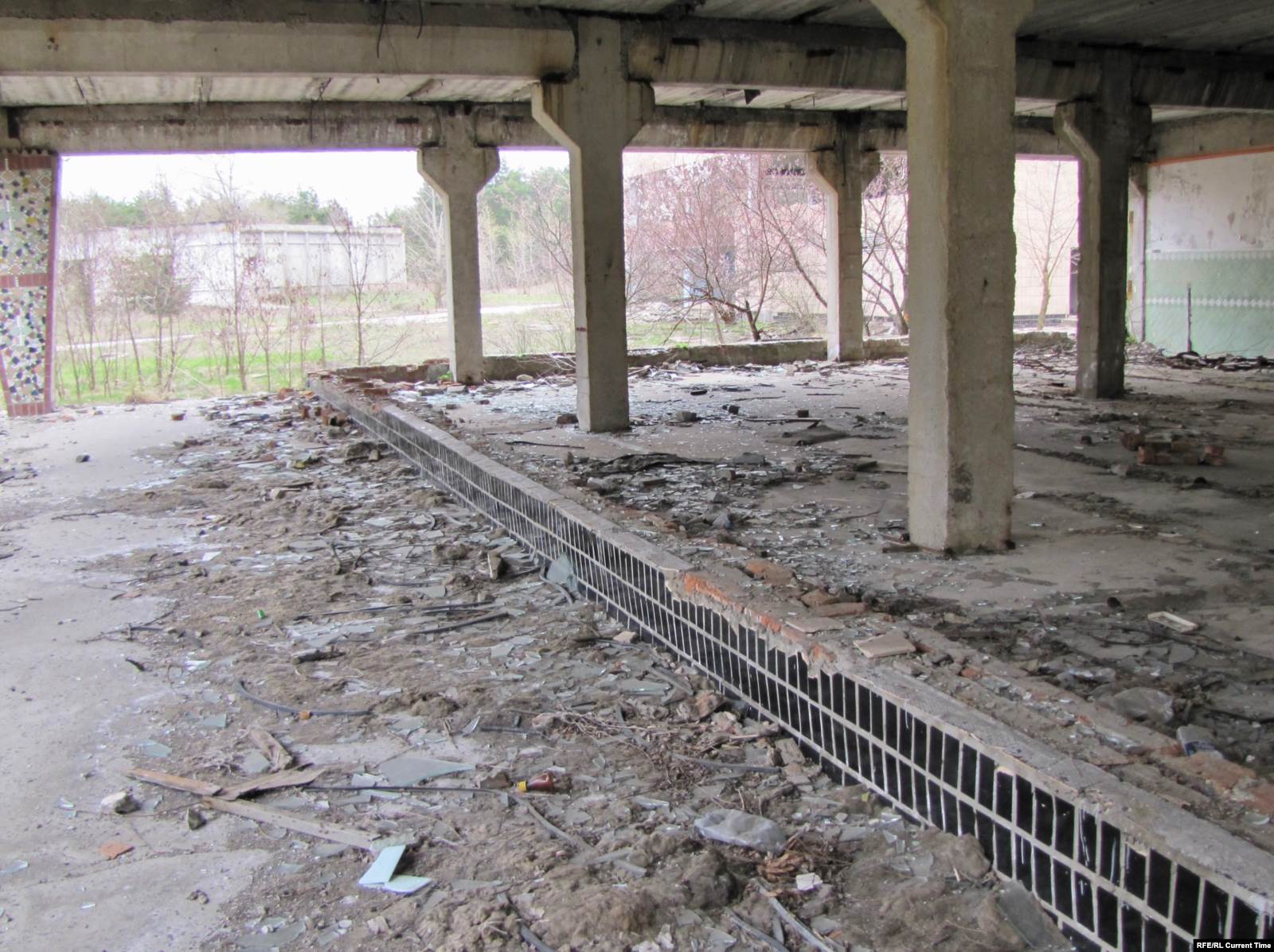 Впрочем, во всем этом видятся следы недавнего пребывания людей: на стенах свежие надписи на актуальные политические темы, на земле – разбитые бутылки и пластиковый мусор, внутри покинутых девятиэтажек – следы от краски для пейнтбола.