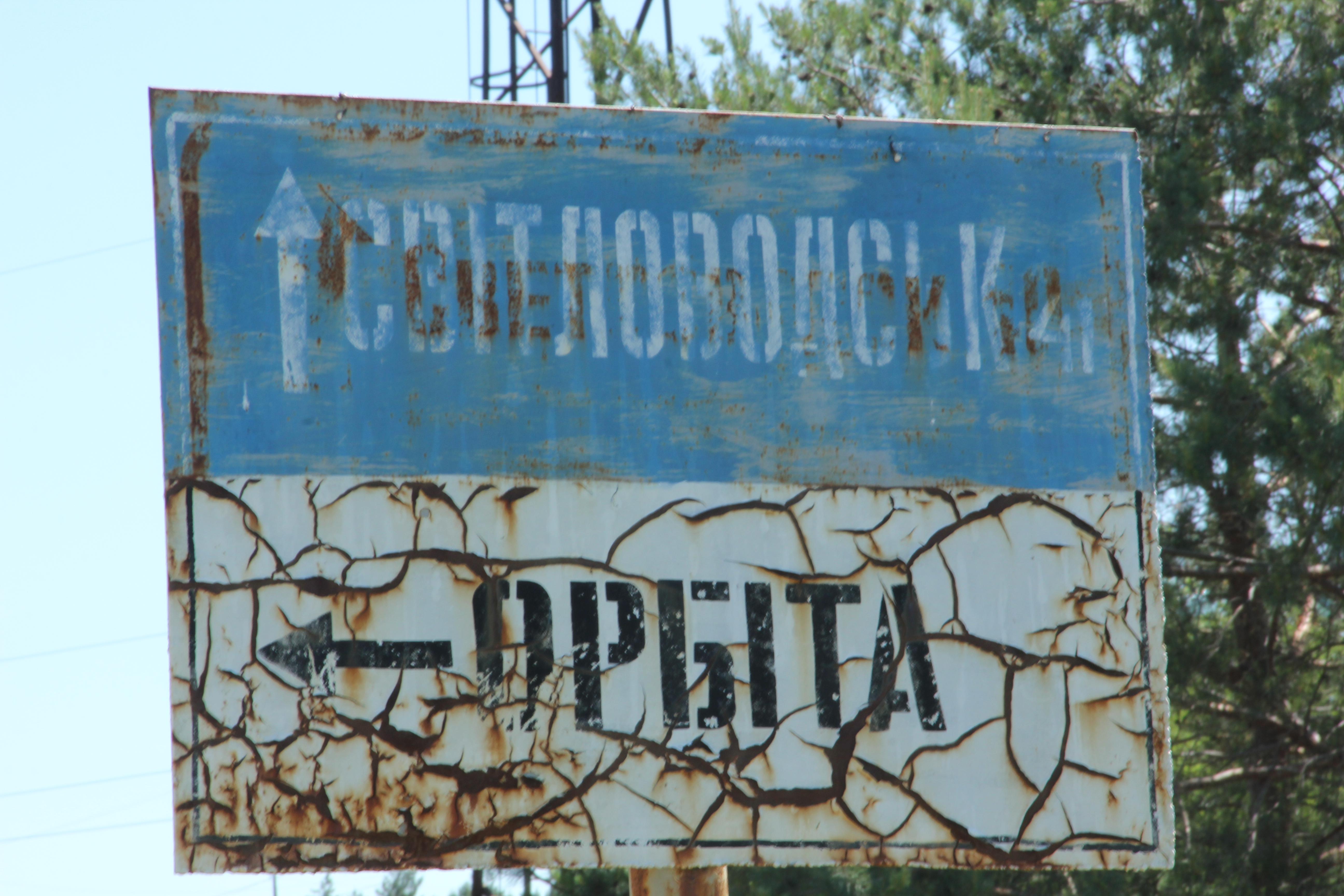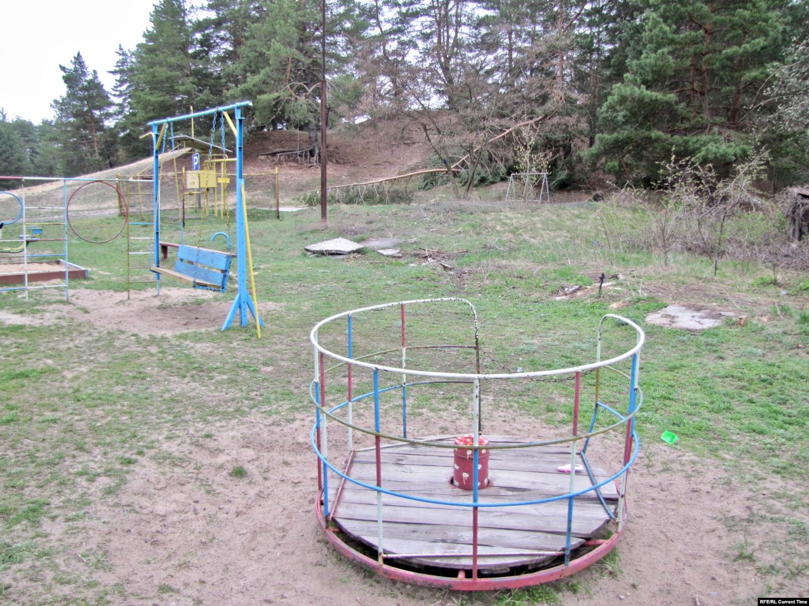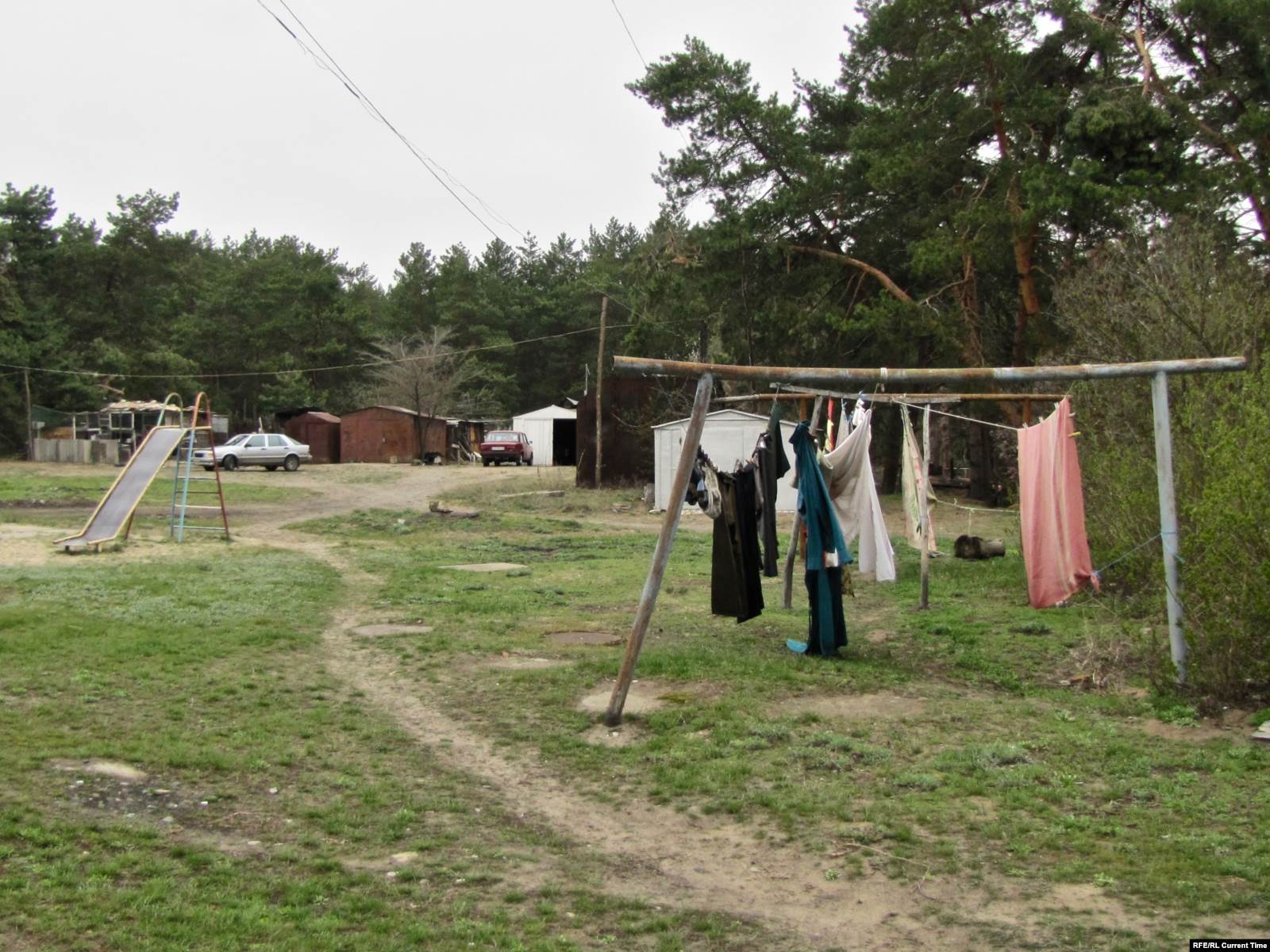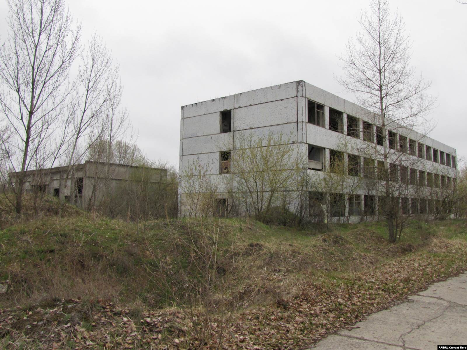 Апокалиптическая картина дополняется звуковым рядом – далеким лаем собак и пением петухов. Пройдя на звук по натоптанной тропинке несколько сотен шагов, за огромными соснами неожиданно можно обнаружить два жилых пятиэтажных дома.