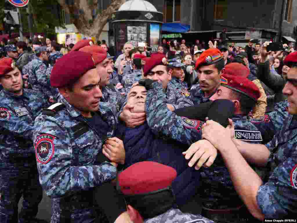 В Ереване восьмой день продолжаются массовые протесты против назначения премьер-министром Армении бывшего президента Сержа Саргсяна. Оппозиция вскоре заявила о начале "бархатной революции", а 20 апреля они вновь перекрыли улицы и заблокировали движение транспорта. По официальным данным, полиция задержала свыше 180 человек