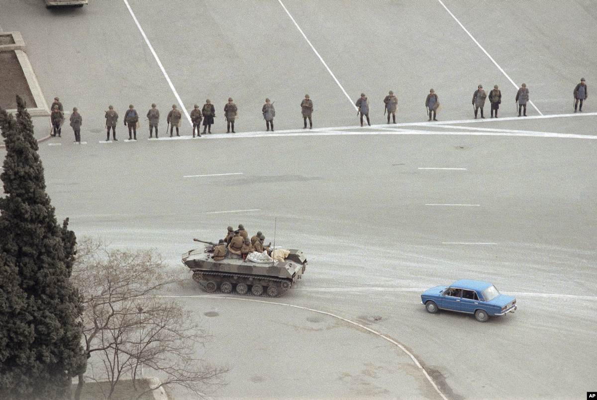 В ночь на 20 января 1990 года несколько бронетанковых частей советской армии вошли в Баку, чтобы взять ситуацию под контроль. По официальным данным, тогда погибли 133 человека, 611 были ранены, еще пятеро пропали без вести. Дата 20 января 1990 года считается одной из величайших трагедий современного Азербайджана и получила название "черный январь".
