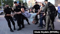 В Минске были задержаны журналисты белорусской службы Радио Свобода Александра Дынько и Андрей Рябчик, журналистка телеканала "Белсат" Ирина Араховская и ее оператор, корреспондент международного агентства Reuters, фотограф TUT.BY Вадим Замировский, корреспондент Onliner Анастасия Занько.