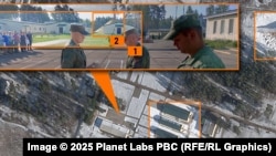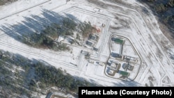 Другой спутниковый снимок, от февраля 2025 года, показывает платформы, строящиеся у основания и у железной дороги. Документация проекта, полученная RFE/RL, упоминает четыре такие платформы.