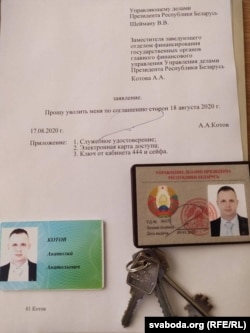 Анатолий Котов уволился с госдолжности "по соглашению сторон" 18 августа. Он работал заместителем начальника отдела финансирования госорганов главного финансового управления Управления делами президента Беларуси. В интервью белорусской службе Радио Свобода Котов говорил, что последней каплей для него стало насилие в отношении белорусов, какого "со времен Великой Отечественной войны не видели на улицах Минска и других городов", и то, что у властей не хватило отваги и совести признать, что это недопустимо в современном обществе.