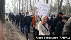 Демонстранты требовали расследования фактов коррупции, выступали против беззакония, а также почтили память журналиста-расследователя Уланбека Эгизбаева, сообщает Радио Азаттык. Участники марша скандировали: "Мы за развитую страну", "Мы за светлое будущее", "За законную страну". И несли плакаты "Задержите Раима" (Раимбека Матраимова).