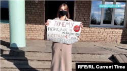 На защиту поселковой больницы встали не только старики. Местные школьники организовали несколько одиночных пикетов, требуя от властей начать ремонт больницы.