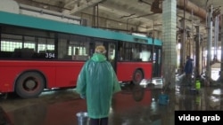 "Первым делом мы делаем влажную уборку в салоне, потом мойщица протирает уже водой со средством дезинфицирующим – именно против этих всех вирусов, – поясняет Иван Зайчук, начальник участка технического обслуживания троллейбусного управления. – После этого обрабатываем салон, вы видели, из баллона, другой работник ходит и обрабатывает салон троллейбуса".