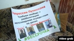 29 октября – акция в поддержку политзаключенных. Пока Кирилл пытается заинтересовать прохожих, Евгением, который стоит с плакатом, заинтересовался военный патруль. В этот раз обошлось.