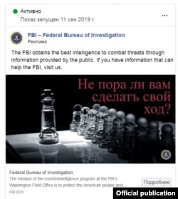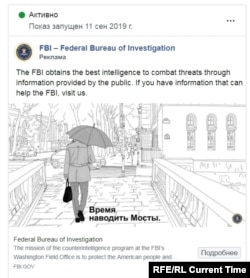 Федеральное бюро расследований США разместило в фейсбуке рекламу на русском языке: она предлагает сотрудничать с американской спецслужбой и делиться информацией, которая может помочь бюро. Показ трех объявлений был начат 11 сентября, всего на рекламу в фейсбуке ведомство с мая по октябрь 2019 года потратило около $1200.