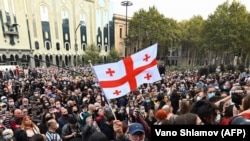 Несколько тысяч недовольных сторонников оппозиции собрались у здания парламента, когда ЦИК подводил окончательные итоги голосования. Оппоненты власти считают, что правящая партия "Грузинская мечта" могла присвоить себе от 3 до 6% лишних голосов, которые имели решающее значение.