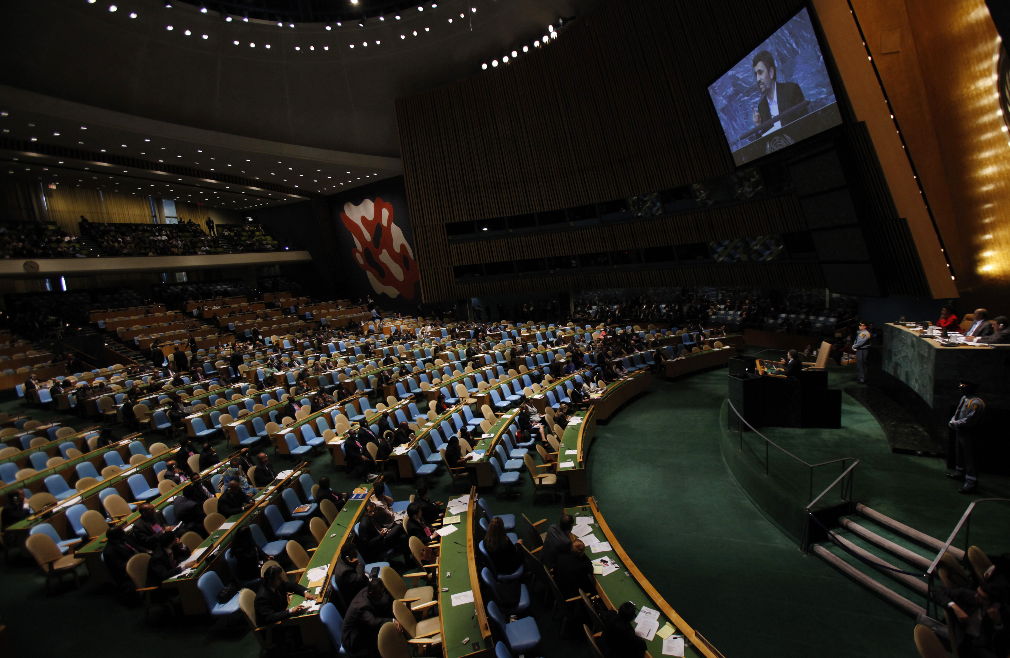 Махмуд Ахмадинежад во время речи на Генассамблее ООН. К этому времени часть делегатов покинули зал. Нью-Йорк, 23 сентября 2010 года
