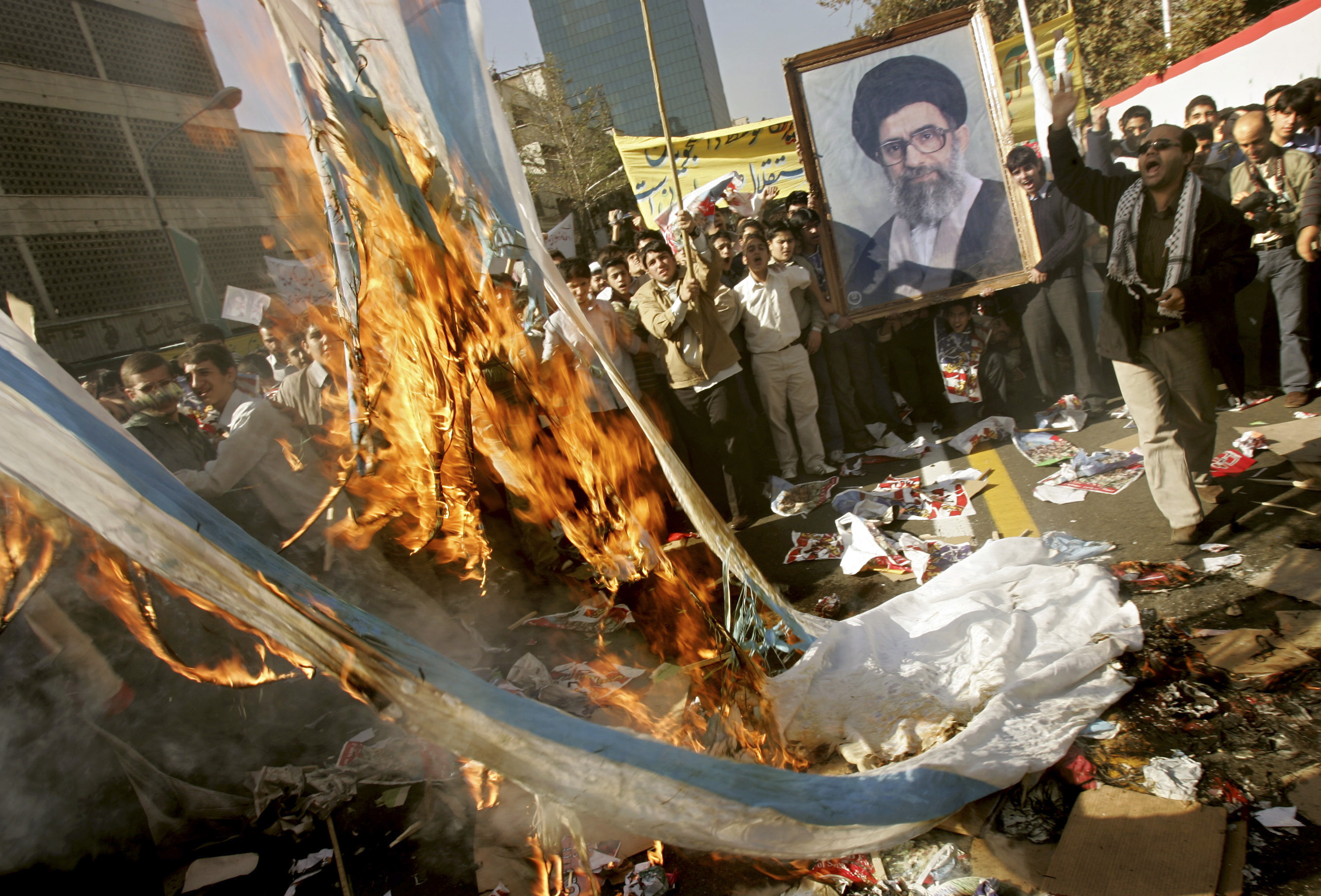 Жители Тегерана сжигают американский флаг в годовщину кризиса заложников 1979 года. Протест также прошел на фоне заявлений о введении санкций