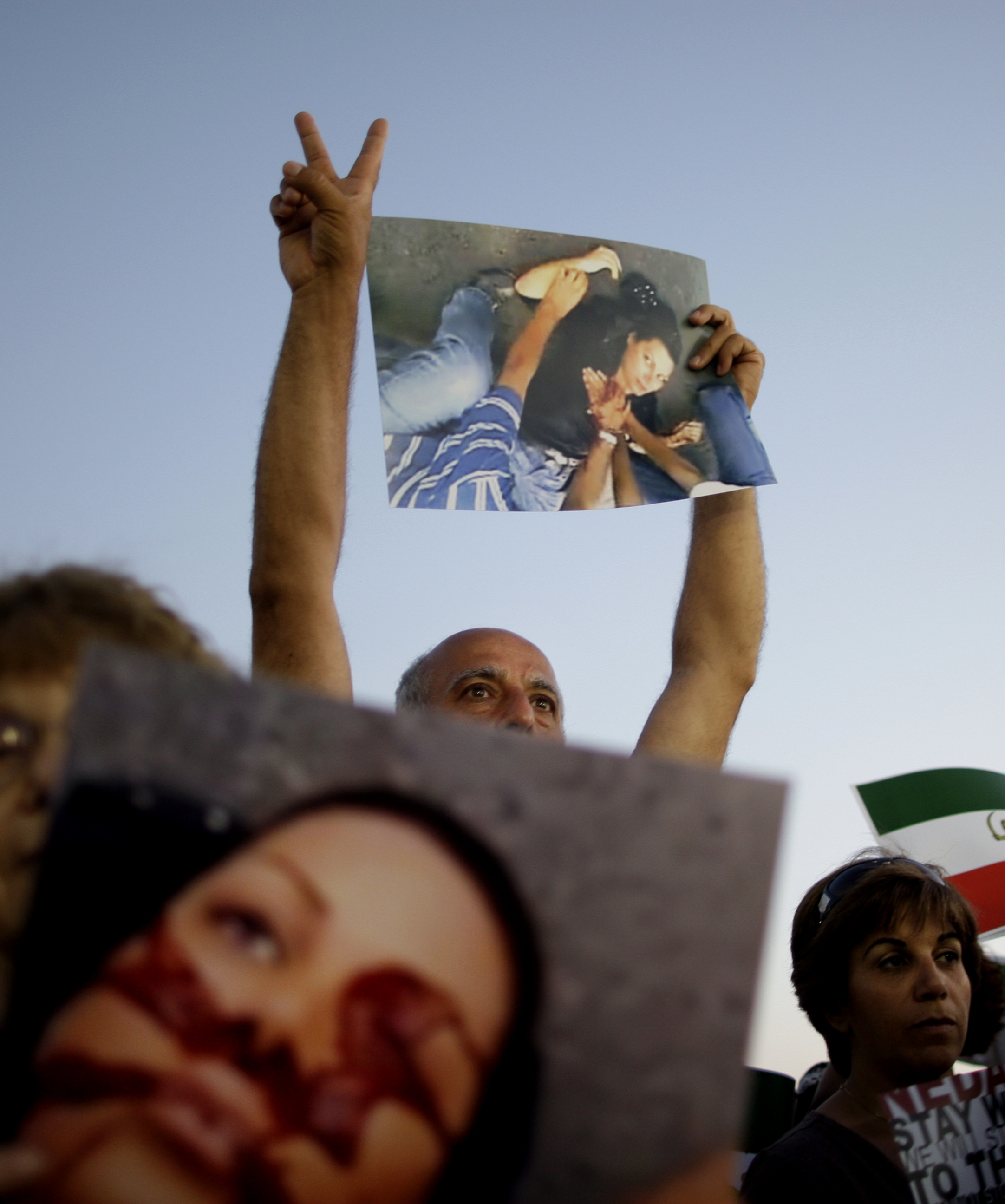 Жители Израиля иранского происхождения на протестах против переизбрания Ахмадинежада на второй срок в Тель-Авиве. В руках – постеры с фотографией Неды Агха-Солтан. 23 июня 2009 года