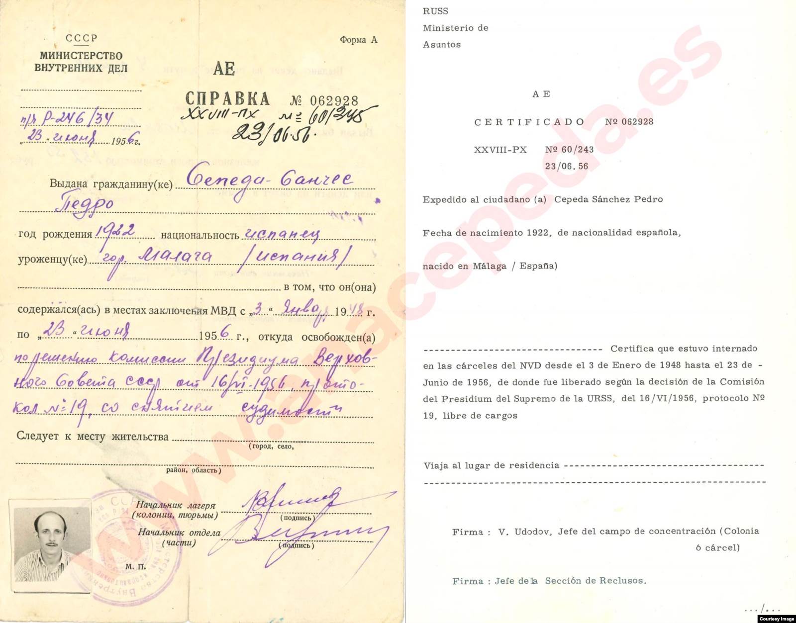 Коротенькое, набранное на печатной машинке письмо Педро Сепеды никогда не дойдет Малаги, где жили его родители. Вместо них его прочитают следователи, которые будут допрашивать Сепеду на Лубянке, потом в "Лефортове". Испанцу придется провести в СССР еще 18 лет, почти девять из них – в ГУЛАГе.