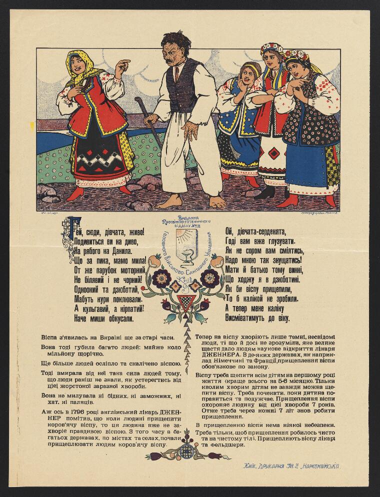 Также по всей империи печатали и распространяли пропагандистские лубочные картинки со стишками. На них изображали изуродованных оспой, рябых детей и рядом красивых, вакцинированных. Подписи были такие: "Вот, батюшка родной, ведь ты тому виной, что с нами не играют и с страхом убегают. Коль б истинно любил, коровью оспу б нам привил".