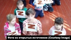 17 марта 2022 года, меньше чем через месяц после начала войны, в детском саду села Куртамыш в Курганской области детей впервые выстроили в форме символа войны – буквы Z. Мероприятие прошло "в рамках акций "Крымская весна" и в поддержку специальной военной операции России", сообщается в официальном паблике муниципалитета. После этого по всей стране был организован флешмоб с аналогичными фотографиями.
