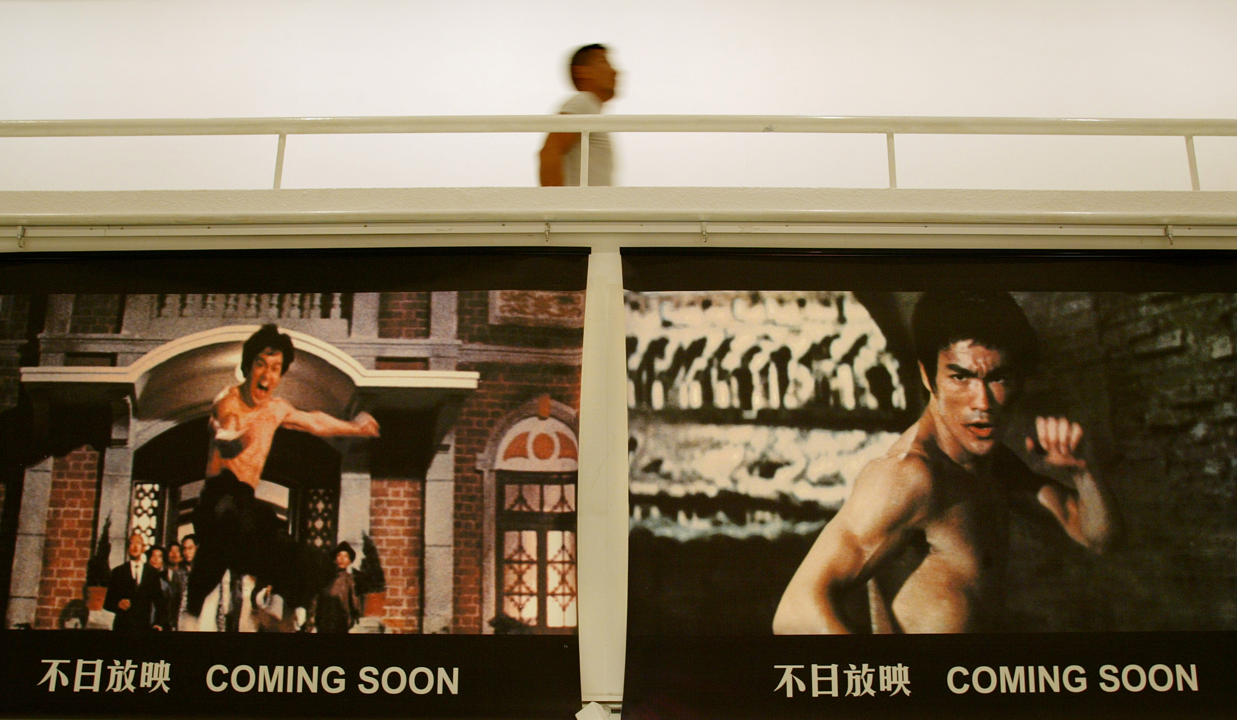 Брюс Ли умер в 1973 году, но культовые фильмы с его участием в СССР смотрели и в 80-х, и в 90-х. Сложно представить себе раздевалку клуба карате без постера с Брюсом Ли. (На фото: анонс открытия выставки в Гонконге к 30-й годовщине смерти актера)