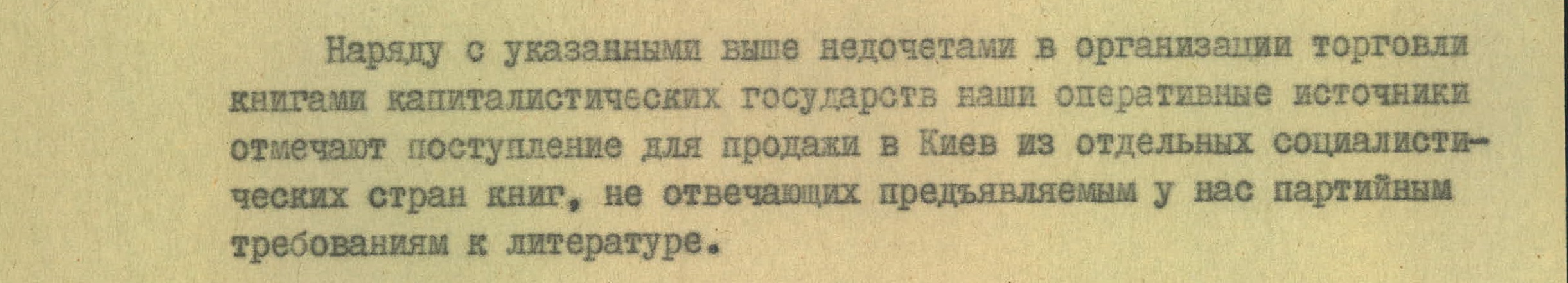 Конечно, книги попали в магазин не просто так — это была идеологическая диверсия, спланированная «спецслужбами империалистических государств и зарубежных идеологических центров», писал председатель КГБ Украинской ССР Виталий Федорчук в ноябре 1979 года главе республики Владимиру Щербицкому. Составленный им документ называется «Об упущениях в организации торговли книгами зарубежных стран в г. Киеве».